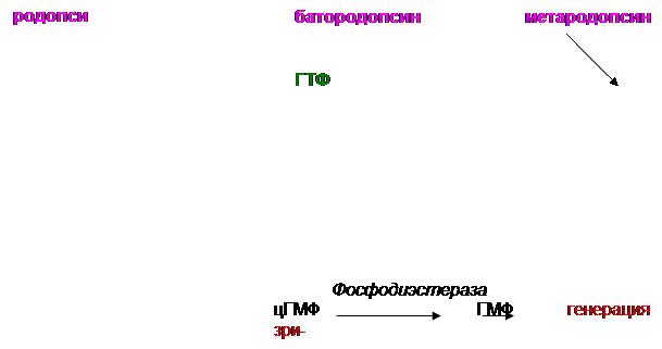 4. Комплекс трансдуцин-ГДФ активирует специфическую фосфодиэстеразу, последнярасщепляет цГМФ.