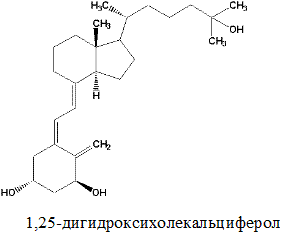 Биохимические функции. Витамин Д3 можно рассматривать как про гормон, так как он превращается в 1,25(ОН)2-Д3, действующий аналогично стероидным гормонам. Так, проникая в клетки-мишени, он связывается с белковыми рецепторами, которые мигрируют в ядро клетки. В энтероцитах этот гормон-рецепторный комплекс стимулирует транскрипцию iРНК, несущую информацию на синтез белка-переносчика ионов кальция. Вероятно, витамин отвечает также за синтез Са2+-АТФ-азы в разных клетках.