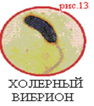 Тяжелое инфекционное заболевание, характерное только для человека. Возбудителем является вибрион (Vibrio cholerac) - подвижная, не образующая спор, грамотрицательная, изогнутая в виде запятой палочка (см. рис. 13).
