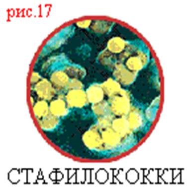 Имеют шаровидную форму (см. рис. 17), диаметр их - 0,8-1 мкм. Они не имеют жгутиков, не продуцируют спор, грамположительны. Стафилококки - факультативные анаэробы, рН 7,2-7,4; при температуре 37°С. При комнатной температуре, широкой аэрации и рассеянном свете стафилококки вырабатывают золотистые, белые, лимонно-желтые и другие пигменты. Патогенными свойствами обладают определенные штаммы золотистого стафилококка, которые при попадании в продукт способны вырабатывать энтеротоксин. При этом органолептические свойства
