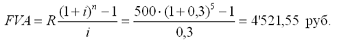 FVA = R • s 5; 30 = 500 • 9,0431 = 4'521,55 руб.