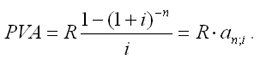 В простейшем случае, для годовой обычной ренты с выплатами в конце каждого года, когда момент оценки совпадает с началом ренты, современная величина финансовой ренты равна: