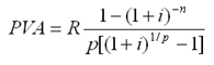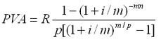 - срочная рента с неоднократным начислением процентов в течение года, при условии, что число выплат не равно числе начислений, т.е. p ≠ m: