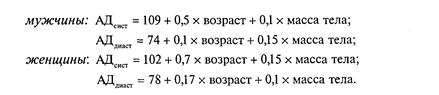 Нормальные величины артериального давления (систолического и диастолического) определяются по следующим формулам: