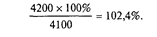 Предположим, что у занимающегося физическими упражнениями ЖЕЛ равна 4200 мл, а должная — 4100 мл. Подставив эти значения в указанное соотношение, получим