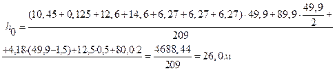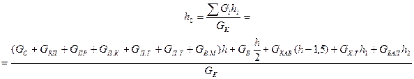 где hi – расстояния по вертикали от уровня рельсового пути (или уровня земли) до соответствующего i -того элемента крана, м; h 1=0,5 м – расстояние по вертикали до ходовых тележек; h 2=2 м - расстояние по вертикали до центра тяжести балласта (принято конструктивно).