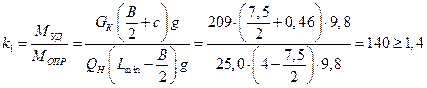 Таким образом, коэффициент грузовой устойчивости крана равен: