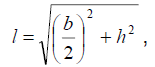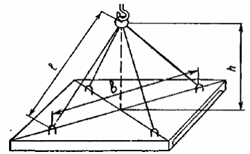 где l — длина стропа, м; b — расстояние между точками закрепления ветвей стропа по диагонали, м; h — высота треугольника, образуемого ветвями стропа, м.