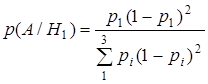 5.4.4. У рыбака имеется три излюбленных места для ловли рыбы, которые он посещает с равной вероятностью каждое. Если он закидывает удочку на первом месте, рыба клюет с вероятностью р 1; на втором – с вероятностью р 2; на третьем – с вероятностью р 3. Рыбак, выйдя на ловлю рыбы, три раза закинул удочку, и рыба клюнула только один раз. Найти вероятность того, что он удил на первом месте.