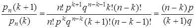 Это отношение больше 1, если (n - k) p > (k+ 1) q, тогда np - q > k (p+q) =k.