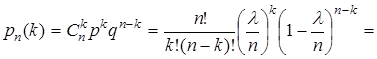Обозначим произведение np символом λ и будем считать число λ константой. Таким образом, чем больше n, тем меньше вероятность “успеха” p, так что np = λ (или