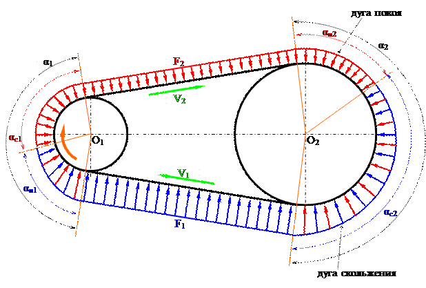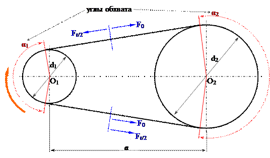 Для работы ремень предварительно натягивают, создавая усилие F0.
