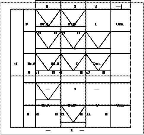в) оставшиеся два варианта – состояние ошибки Е (входная цепочка не соответствует виду { W 2 V}.