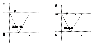 а) для правил грамматики вида Х à y a (a – непустая цепочка терминалов и нетерминалов; y – терминал) клетка управляющей таблицы заполняется в соответствии с рис. а (см. на след.стр.);