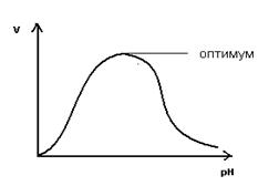 На графике эта зависимость имеет вид колокола. На вершине кривой есть точка оптимума рН, где фермент имеет наибольшую активность. рН оказывает воздействие на степень ионизации кислотных и основных групп. При различных значениях рН активный центр может находиться в частично ионизированной или неионизированной форме, что оказывает влияние на третичную структуру активного центра и на формирование фермент-субстратного комплекса.