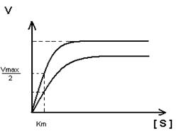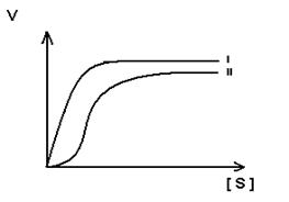 S-образная форма кривой объясняется по-видимому тем, что регуляторный фермент состоит не из одной полипептидной цепи, а из нескольких. Каждый протомер обладает свойством связывать субстрат (есть субстратные и каталитические центры на каждом протомере) с образованием F-S-комплекса. Активные центры конкурируют между собой за субстрат до тех пор пока не произойдет полного насыщения всех активных центров, после этого скорость реакции быстро достгает максимума.