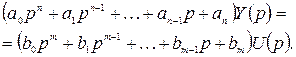 Вынеся за скобки изображения Y(p) и U(p) получим уравнение вида: