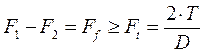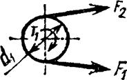Соотношение натяжений ведущего F1 и ведомого F2 ветвей при работе без учета центробежных сил определяют по известному уравнению Л. Эйлера, выведенному для нерастяжимой нити.