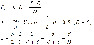 При изгибе ремня толщиной δ на шкиве диаметра D относительные удлинения наружных волокон равны δ/D.