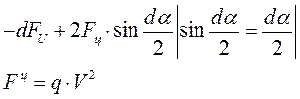 где е - основание натуральных логарифмов; γ- угол скольжения; приближенно равным 0,7 угла обхвата α.