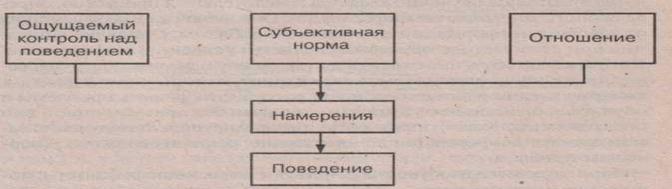 Некоторые виды поведения, напротив, не находятся под полным волевым контролем. Применительно к волевому контролю разработана теория запланированного поведения, диаграмма которого представлена на рис. 23. Как и теория разумного поведения, она предполагает, что склонности к поведению определяются отношениями и субъективными нормами. Новшеством теории запланированного поведения является введение в схему такого элемента, как ощущаемый контроль над поведением.