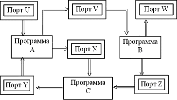 Рис. 6.3. Пример программной системы с портами сообщений.