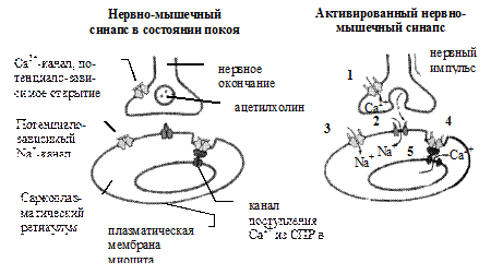 Рис.18.8. Система ионных каналов в нервно-мышечном синапсе