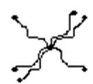 Рисунок 20.12. Схематическое изображение молекулы димера фибронектина. 2 полипептидные цепи сходны, но не идентичны. В области С-концевых отделов они соединены дисульфидными связями. В каждой цепи имеется по несколько глобулярных доменов, соединенных гибкими полипептидными сегментами. Эти домены могут специфически связываться с другими молекулами или клетками