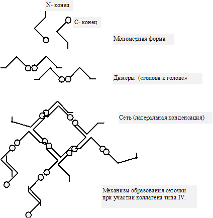 Рис. 20.15. Механизм образования компонента внеклеточного матрикса - сеточки при участии коллагена IV типа