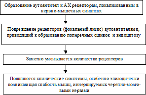 Рис.18.10. Схема развития миастении гравис