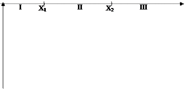 соответственно. Разобьем область определения аргумента х на три участка: I, II, III. Осуществим на каждом участке выбор точек, лучших по Парето, т.е. по обоим критериям одновременно: