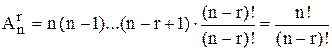 Свойство. Число r-размещений без повторений из n предметов обозначается