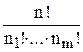 Объекты “а” можно переставлять n1! способами, но поскольку все они одинаковы, то такие перестановки не дают новых комбинаций. Следовательно, число действительно различных перестановок за счет совпадения первых n1 элементов будет в n1! раз меньше, чем в случае всех различающихся элементов. Аналогично, совпадение n2 элементов “b” уменьшает число различных перестановок в n2! раз, и т.д. Поскольку при несовпадении всех n элементов количество перестановок было бы равно n!, то