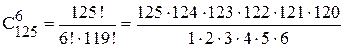 В примере 1.1.в) 6 делегатов из 125 человек можно выбрать