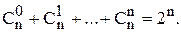 Замечание. Каждая отбираемая в сочетание группа элементов представляет собой некоторое подмножество исходного множества из n объектов. Следовательно, число всех подмножеств (включая пустое) множества из n элементов равно 2n.