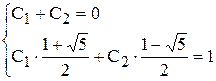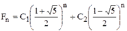 Из начальных условий F0 = 0; F1 = 1 получаем систему уравнений для вычисления С1 и С2 = 1: