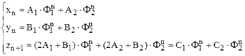 – тоже последовательность Фибоначчи. В соответствие с формулой общего решения и уравнением (c) получим: