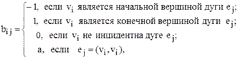 где a – любое натуральное число, отличное от 1. У неориентированного графа оба элемента матрицы, соответствующие вершинам, инцидентным ребру ej, равны 1.