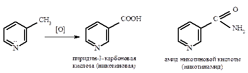 Пиридин – наиболее типичный представитель ароматических гетероциклов. Производные пиридина широко представлены среди веществ, имеющих важное биологическое значение. 3-Метилпиридин – важный синтетический предшественник пиридин-3-карбоновой (никотиновой) кислоты – представителя витаминов В. Амид никотиновой кислоты (никотинамид) – структурный компонент коферментов никотинамидадениндинуклеотида (НАД+) и никотинамидадениндинуклеотидфосфата (НАДФ+). Последний кофермент (один из комплекса витаминов В2) входит в состав эритроцитов и принимает участие в важных биохимических процессах.