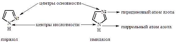 Имидазол и пиразол проявляют амфотерный характер. В кристаллическом состоянии и в неполярных растворителях они образуют межмолекулярные ассоциаты.