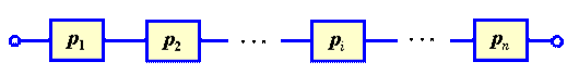 Будем считать, что при последовательном соединении элементов система находится в работоспособном состоянии только тогда, когда работают все ее элементы (отказ системы наступает тогда, когда отказывает хотя бы один элемент системы).
