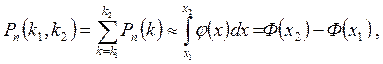 Если производится n независимых испытаний, в каждом из которых событие А появляется с одинаковой вероятностью р, то вероятность того, что в этих испытаний событие А произойдет не менее k1 раз и не более k2 раз (безразлично, в какой последовательности) может быть оценена (тем точнее, чем больше n) по формуле