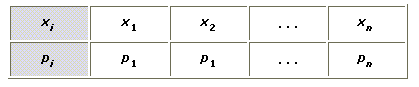Ряд распределения представляет собой таблицу, состоящую из двух строк. В первой строке располагаются в порядке возрастания все возможные значения дискретной случайной величины. Во второй – соответствующие им вероятности p1, p2,..., pn, где pi = Р{Х = xi }.