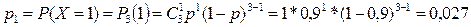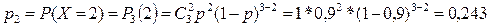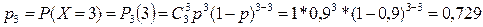 Тогда вероятности рi (i = 0,1,2,3) – вероятности того, что из 3 строящихся домов в срок будут сдано ровно 0, 1, 2 или 3 дома определяются с помощью формулы Бернулли