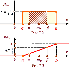 График плотности распределения для равномерно распределенной случайной величины имеет вид, показанный на рис.7.2.