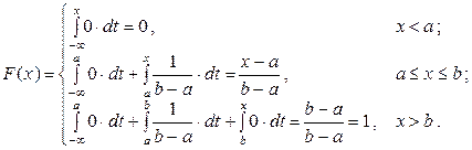 Таким образом, интегральная функция равномерно распределенной величины определяется как