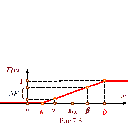 График интегральной функции для равномерно распределенной случайной величины имеет вид, показанный на рис.7.3.