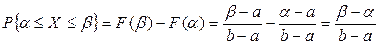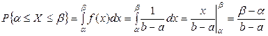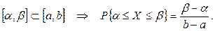 Вероятность попадания равномерно распределенной случайной величины на заданный участок[ α,β ], если участок входит в диапазон [ a, b ], можно определить двумя способами: