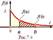 График плотности распределения для случайной величины, распределенной по показательному закону, имеет вид, показанный на рис.7.4