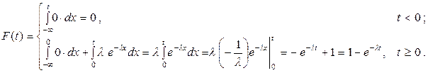 Таким образом, интегральная функция случайной величины, распределенной по показательному закону, определяется выражением